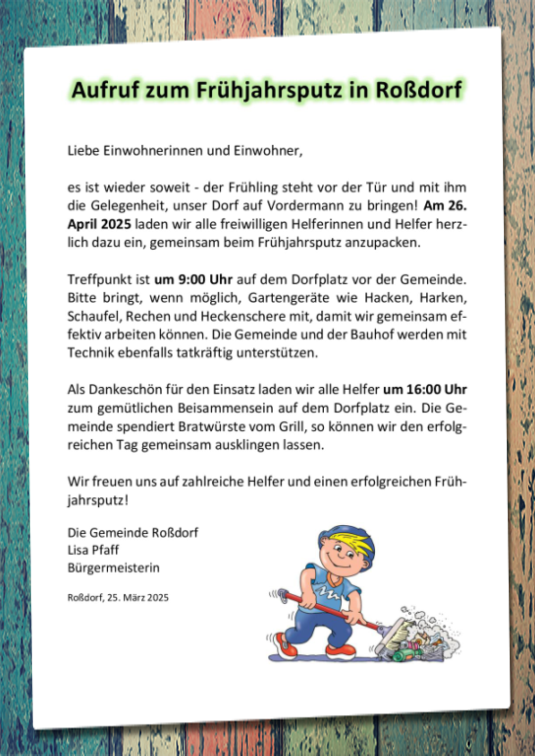 Frühjahrsputz 2025 - Gemeinde Roßdorf Rhön
